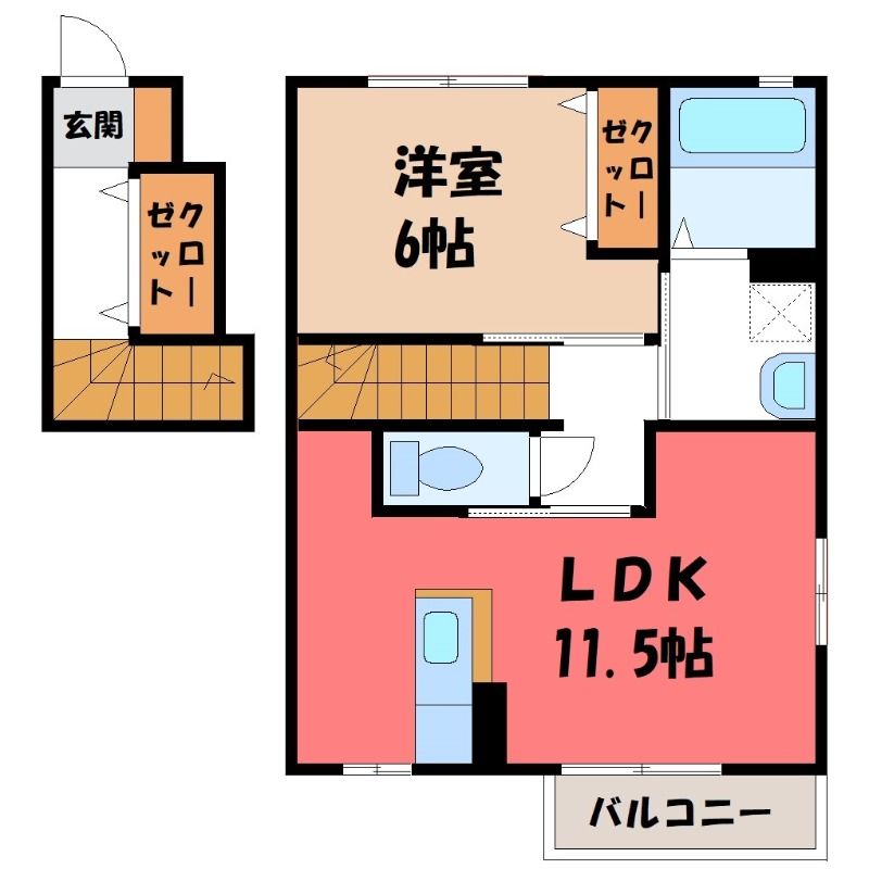 1LDK( LDK11.5畳/洋室6畳(*階) ) |