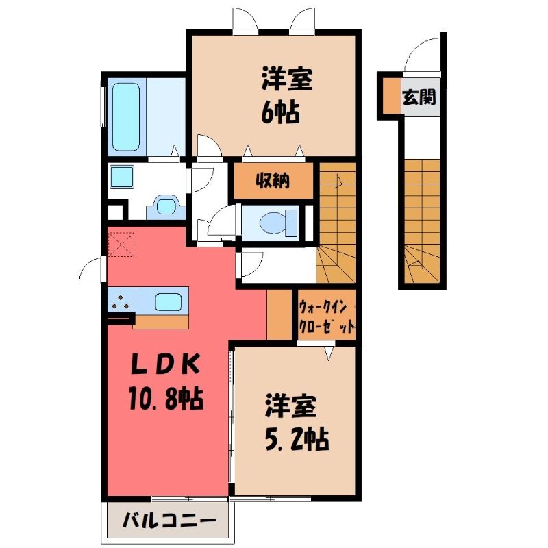 2LDK( LDK10.8畳/洋室6畳(*階)/洋室5.2畳(*階) ) |