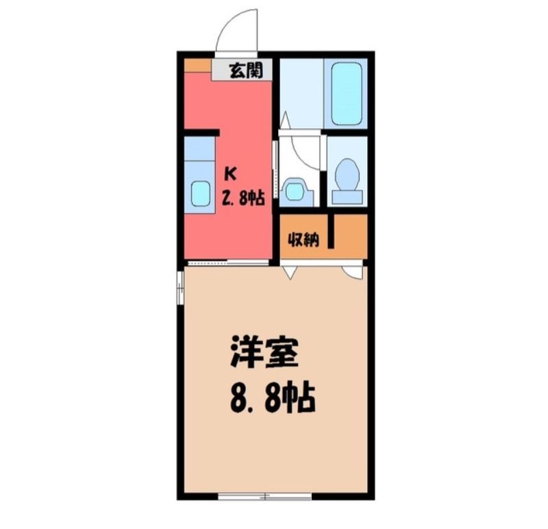 1K( K2.8畳/洋室8.8畳(*階) ) |