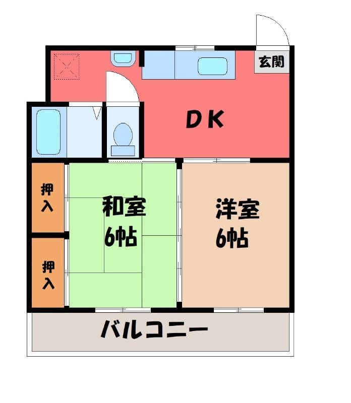 2DK( 洋室6畳(*階)/和室6畳(*階) ) |