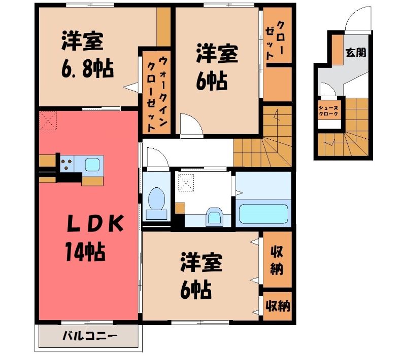 3LDK( LDK14畳/洋室6.8畳(*階)/洋室6畳(*階)/洋室6畳(*階) ) |