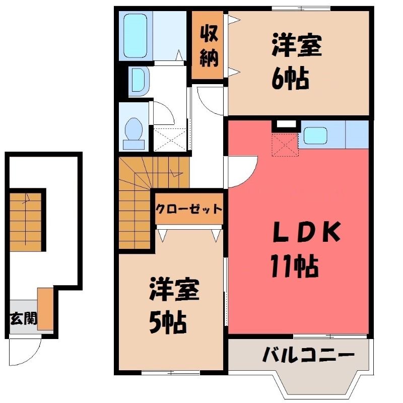 2LDK( LDK11畳/洋室6畳(*階)/洋室5畳(*階) ) |