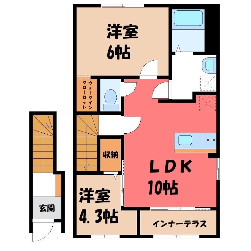2LDK( LDK10畳/洋室6畳(*階)/洋室4.3畳(*階) ) |
