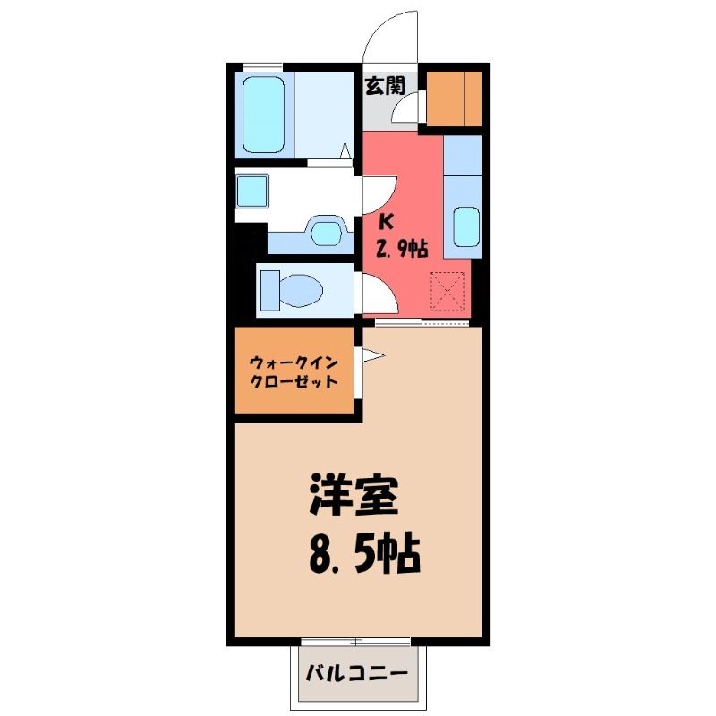 1K( K2.9畳/洋室8.5畳(*階) ) |