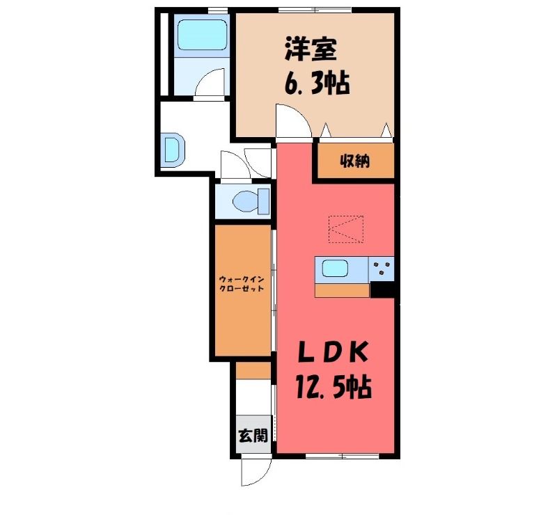 1LDK( LDK12.5畳/洋室6.3畳(*階) ) |