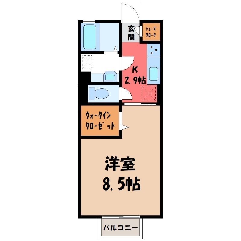 1K( K2.9畳/洋室8.5畳(*階) ) |