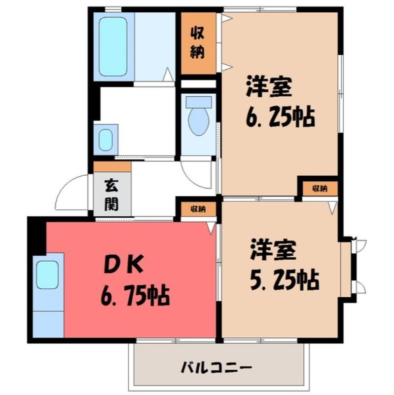 2DK( DK6.8畳/洋室6.2畳(*階)/洋室5.2畳(*階) ) |