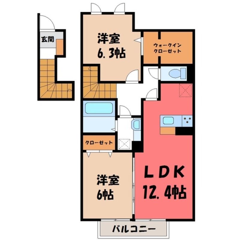 2LDK( LDK12.4畳/洋室6畳(*階)/洋室6.3畳(*階) ) |