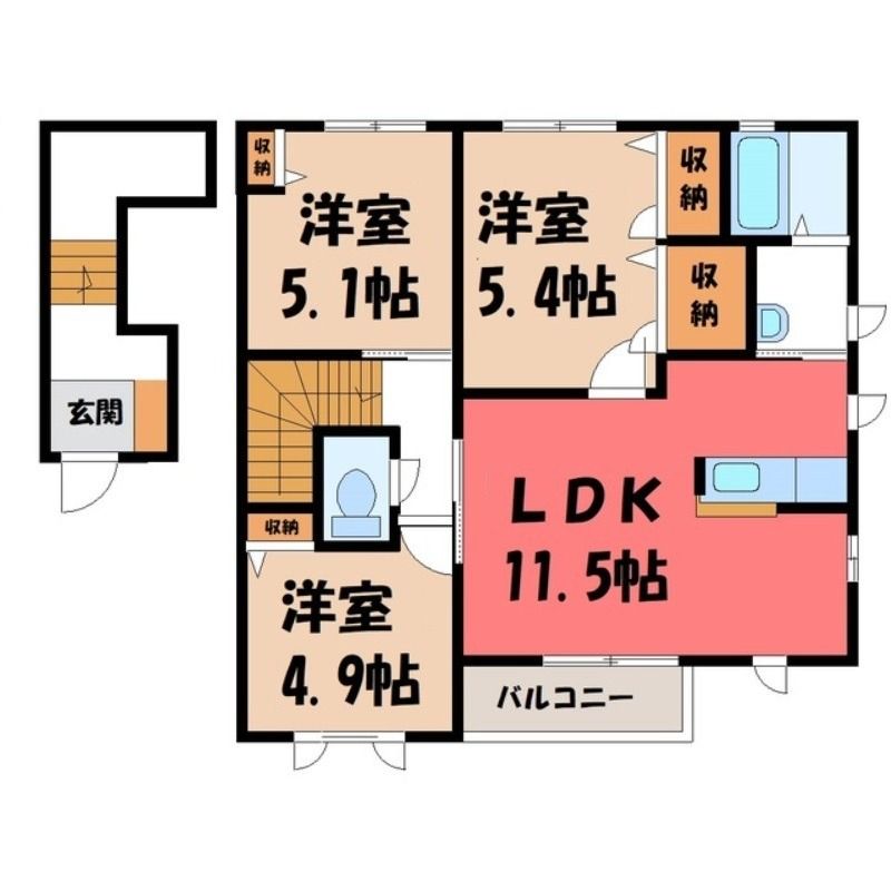 3LDK( LDK11.5畳/洋室5.4畳(*階)/洋室5.1畳(*階)/洋室4.9畳(*階) ) |