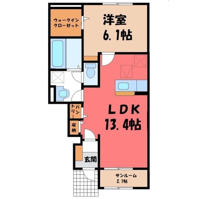 1LDK( LDK13.4畳/洋室6.1畳(*階) ) |
