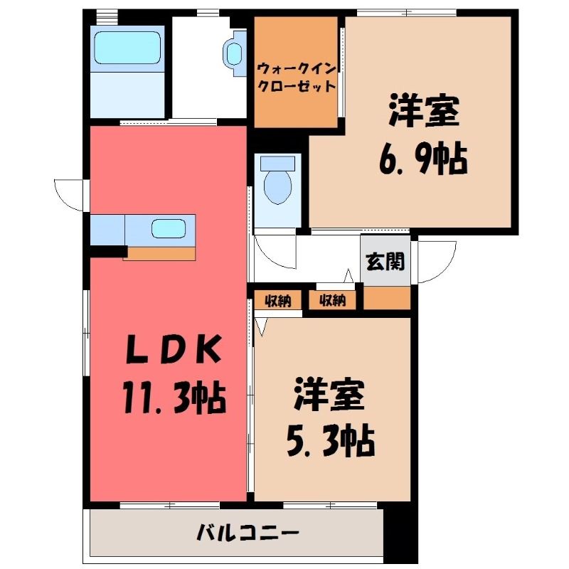 2LDK( LDK11.3畳/洋室6.9畳(*階)/洋室5.3畳(*階) ) |