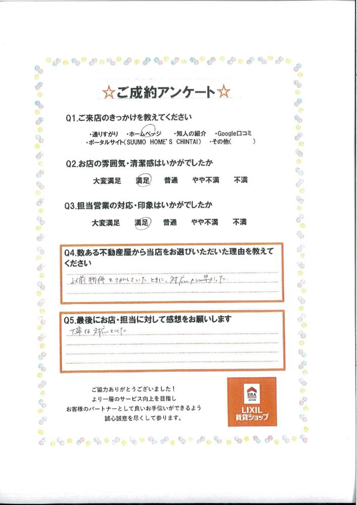 この度はコガネイハウジンング古河店をご利用いただき誠にありがとうございました。