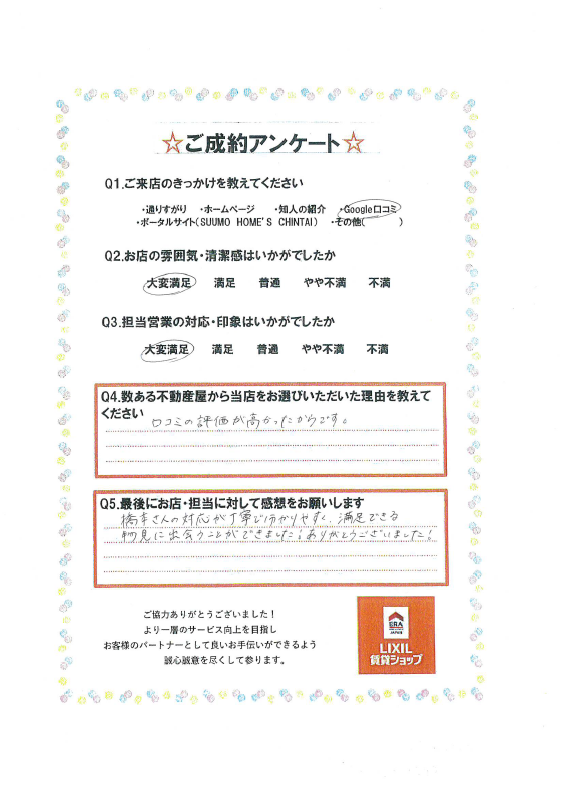 橋本さんの対応が丁寧で分かりやすく、満足できる物件に出会うことが出来ました!