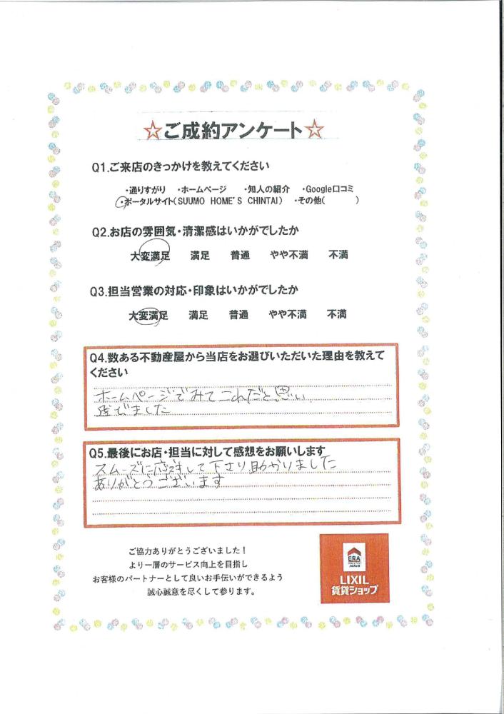 スムーズに対応してくださり助かりました ありがとうございます(古河市 S様)