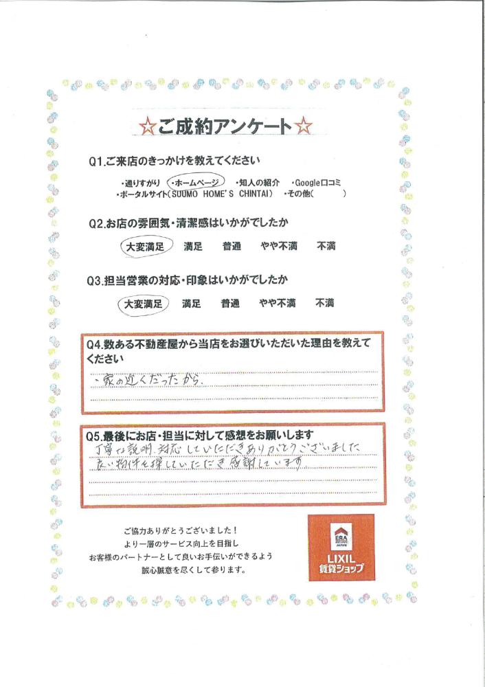 良い物件を探していただき感謝しています